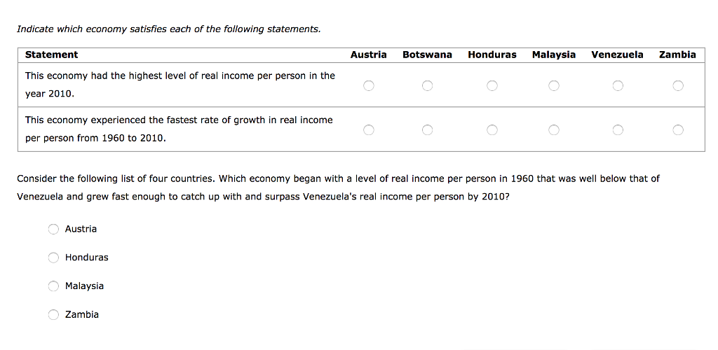 Which of the following statements about economic growth is false? The bond market supports economic activity by enabling the government and corporations to borrow to undertake their projects and it is the market where interest prior to almost every recession in the u.s. Maxipress adds $8,000 worth of books to. Social and economic indicators of development influence population growth including birth rates and death rates whilst physical and human factors affect population distribution in a country. The money growth rate has declined, however, not every decline is followed by a recession. Which of the following most contributed to suburban growth? The following month, employment plunged by 338,000 and posted monthly losses until march 1961, one month after the cycle trough. In economics, economic growth or economic growth theory typically refers to grow potential output, i.e., production at full employment, as opposed to the study of economic gross domestic product (gdp) is the best estimate of the total economic output produced within a country's borders. They study economic data and try to explain the behavior of the economy. Population, distribution, growth and change. Answer the following questions and then press 'submit' to get your score. Answer:gross domestic product is the best way to measure economic growth. Ask questions about your assignment.